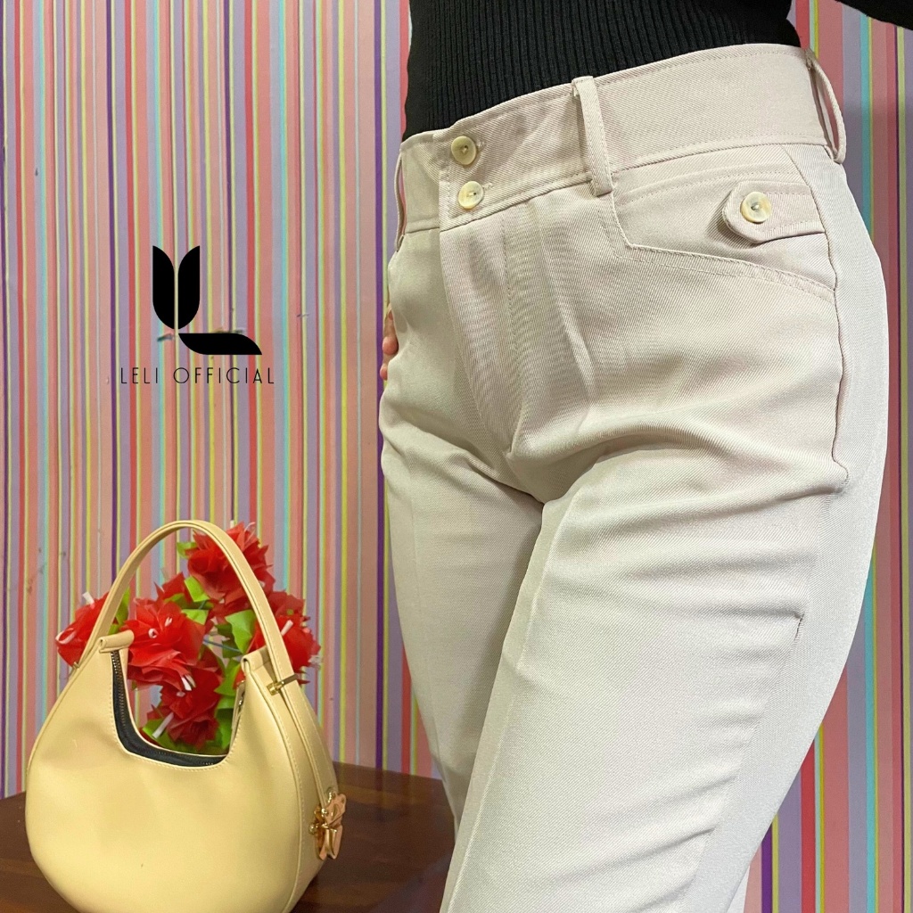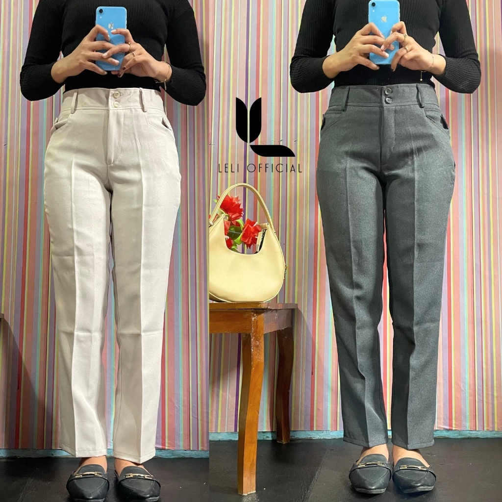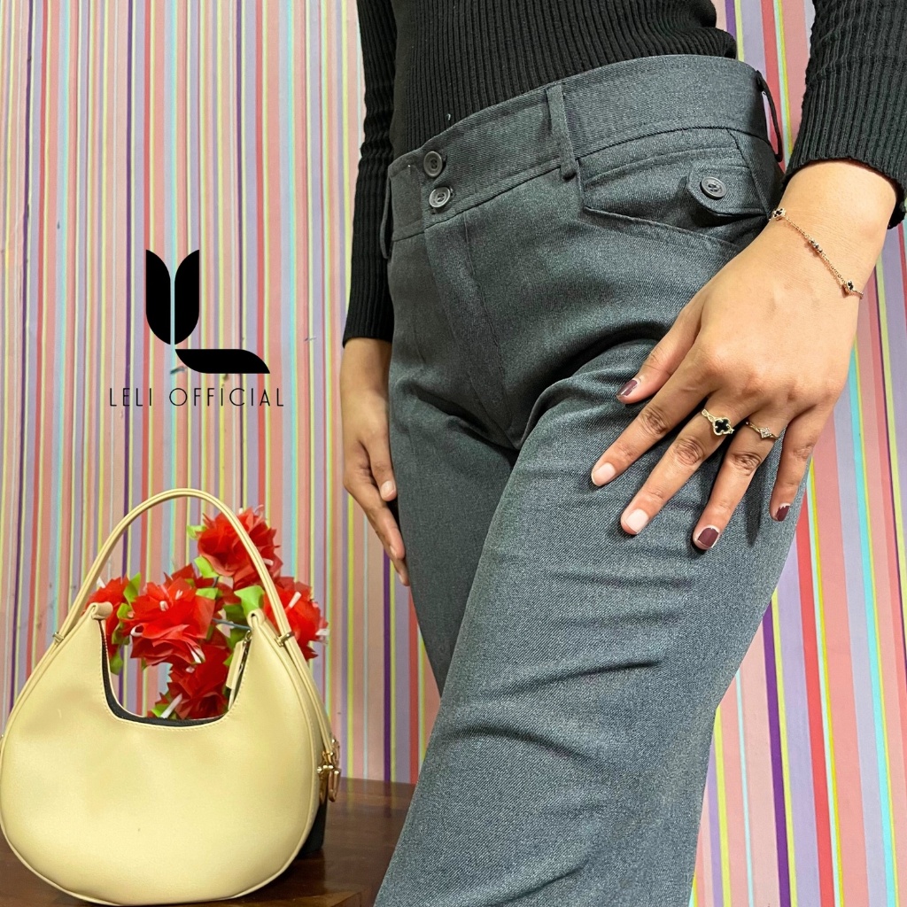Celana Bahan Wanita - Celana Panjang Kerja Kantor Anti Kusut Slimfit Resleting Wol Premium Dewasa