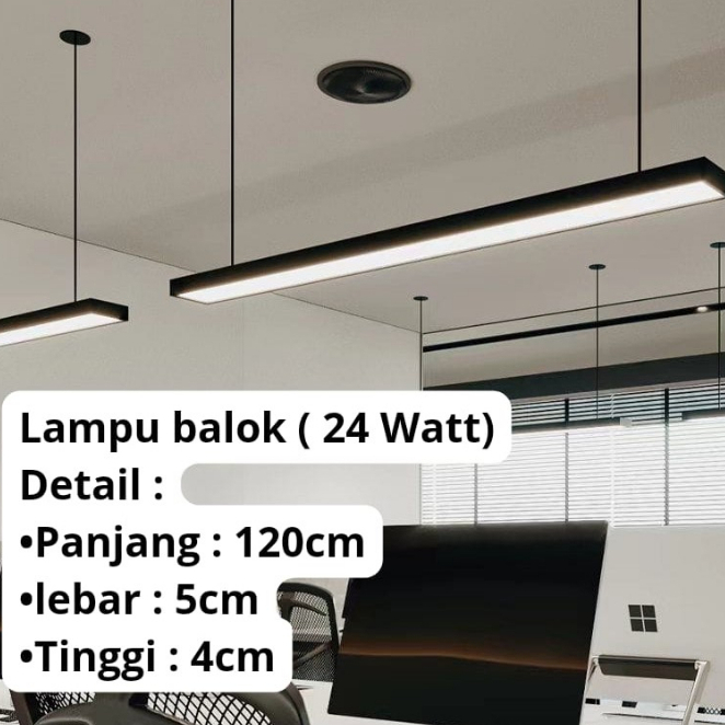 LAMPU GANTUNG LED LAMPU BALOK OFFICE CEILING LAMP 24 WATT