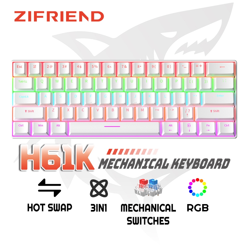 [Mall] ZIFRIEND H61K PRO 3IN1 MECHANICAL KEYBOARD WIRELESS GAMING KEYBOARD 3PIN HOT SWAPPABLE RGB LIGHT RED BLUE SWITCH