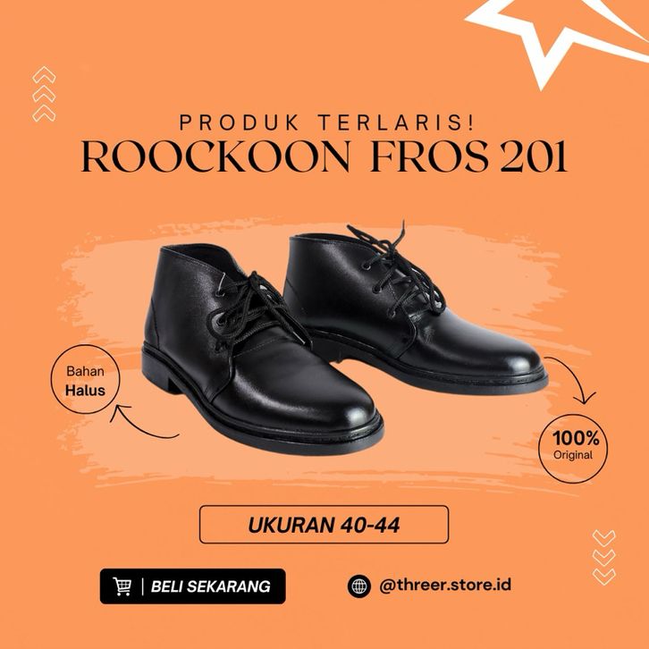 Sepatu Pantofel Paskibra Pria Kulit Sitetis ROOCKON PDH Fros 201 Hitam Original 100%