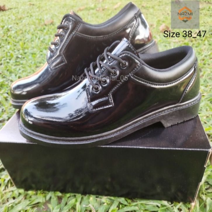 Sepatu Pantofel Pdh Pria Polri-TNI Security Satpam Paskibra Guru Formal Hitam Kilap Doof