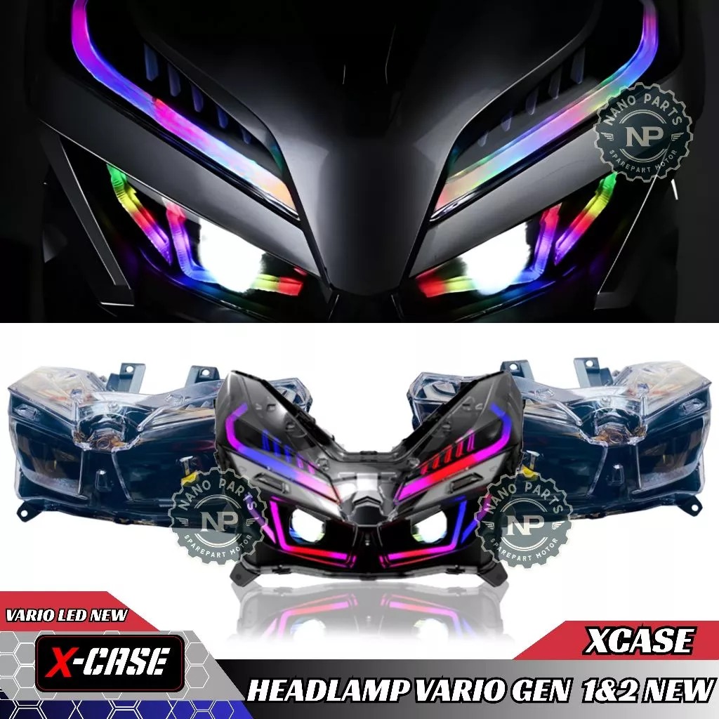 PROMO !! Full Set Headlamp Lampu Depan Biled Matrix Vario 125 150 Gen 1&2 Alis RGB Connect HP Plug & Play