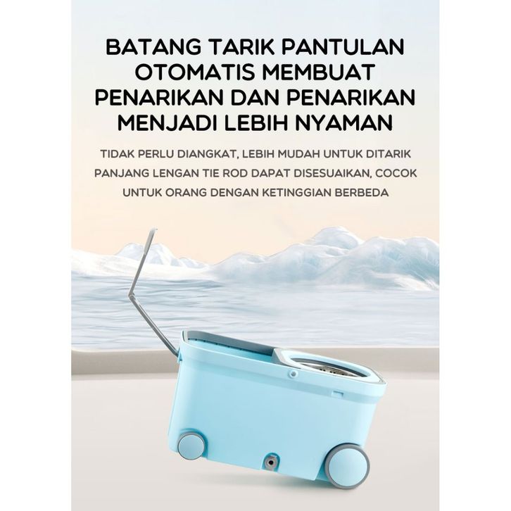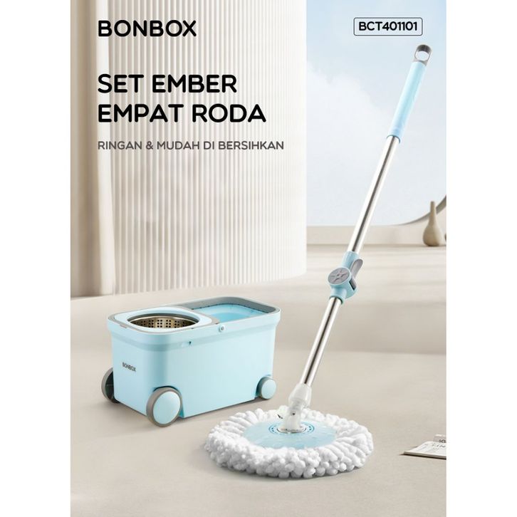 TERLARIS BONBOX ALAT PEL LANTAI 2 IN 1 KAIN FIBER DENGAN 4 RODA EMBER SPIN MOP MENCUCI DAN MEMBILAS ALAT PEMBERSIH LANTA