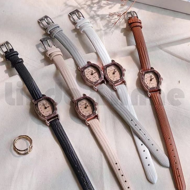 EKSKLUSIF Jam Tangan Kecil Wanita Analog Casual Vintage Tali Kulit Murah edokd