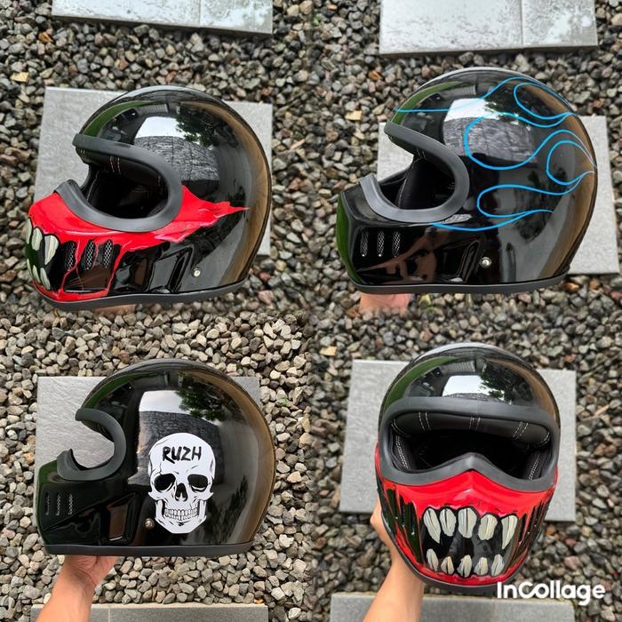 motif api biru, motif gigi, motif lancip ungu, motif tengkorak, polos