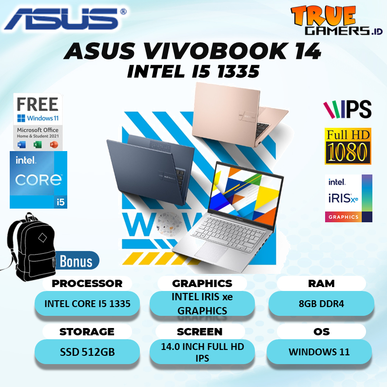 LAPTOP ASUS VIVOBOOK 14 A1405ZA & A1404 I5 GEN 13 16GB 512SSD W11+OHS 14.0 WUXGA GARANSI RESMI
