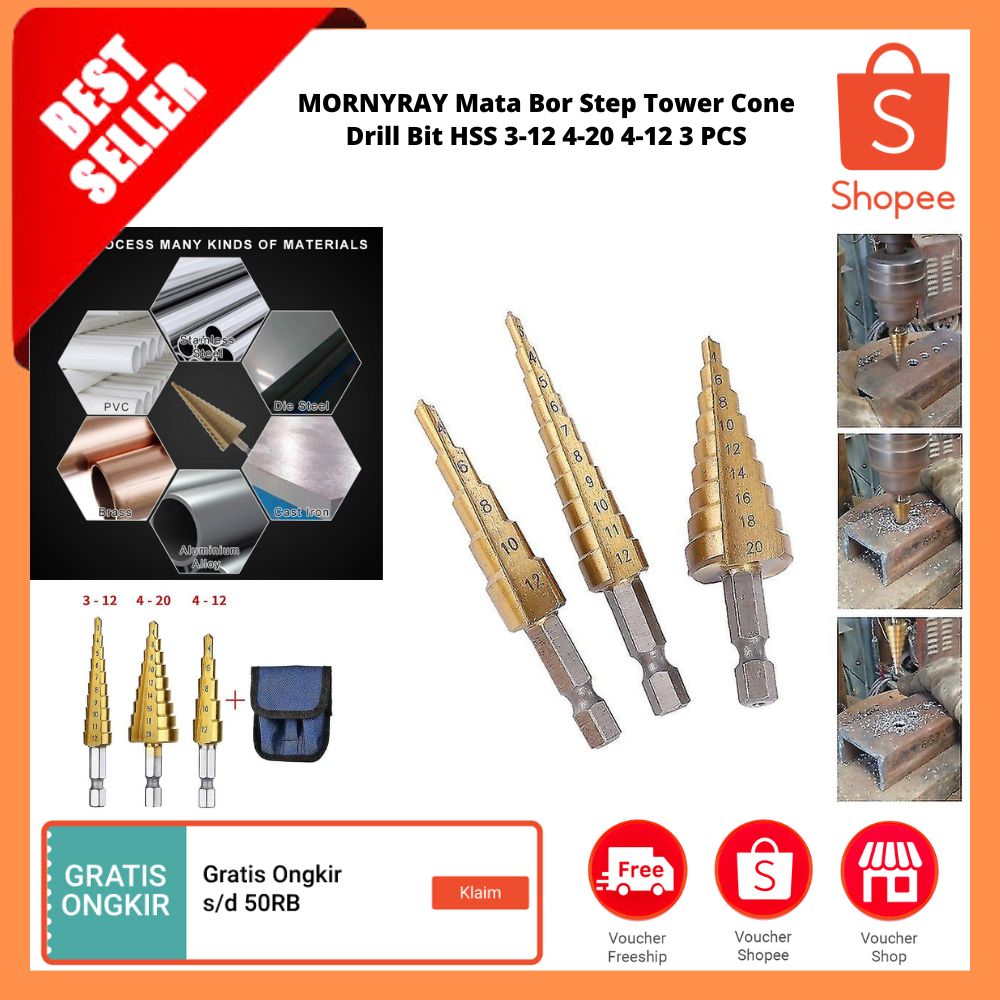 Mata Bor Step Tower Cone Drill Bit HSS 3-12 4-20 4-12 3 PCS / Alat Pengeboran Listrik Logam Baja
