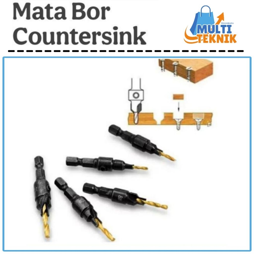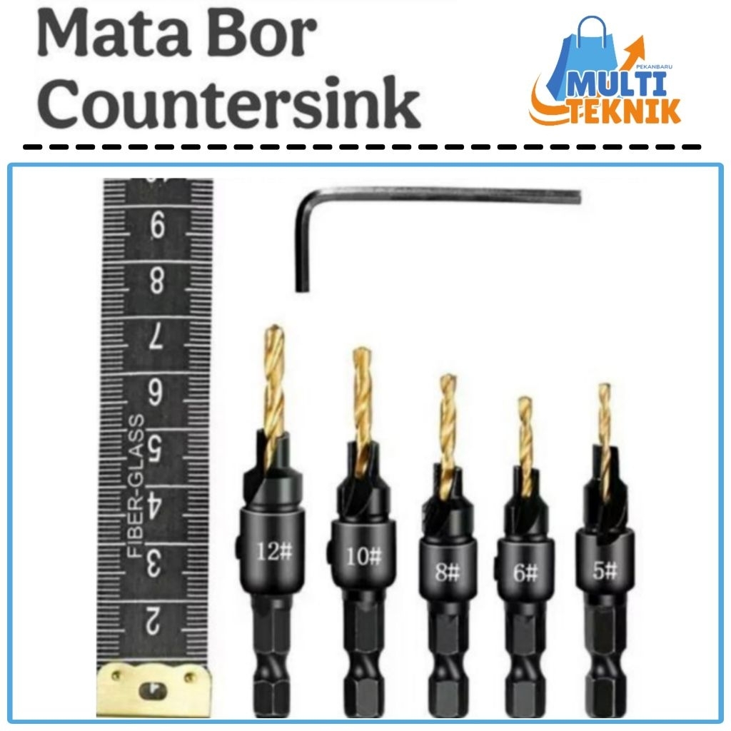Mata Bor Kayu Countersink Chamfer HSS Flute Drill Bits Set 5Pcs 5-12mm