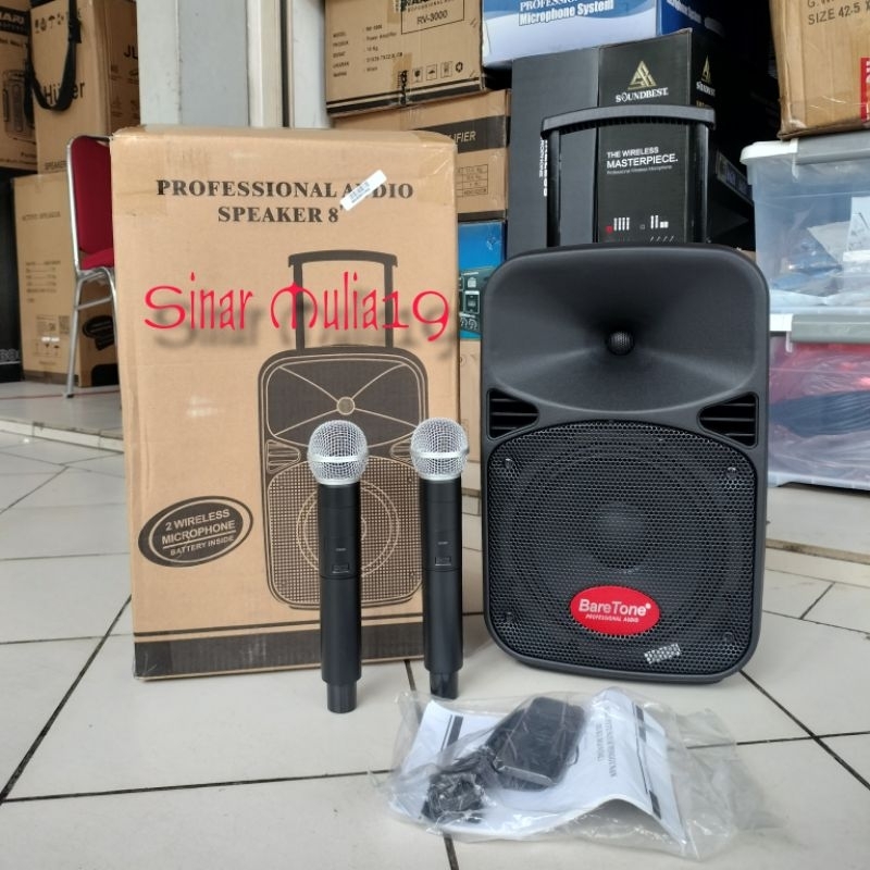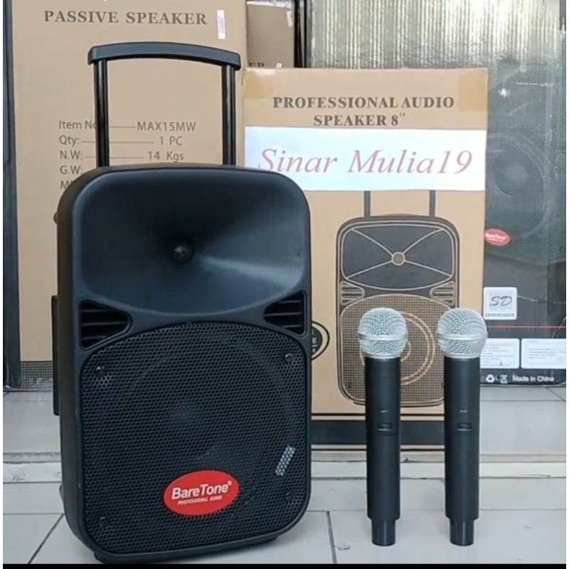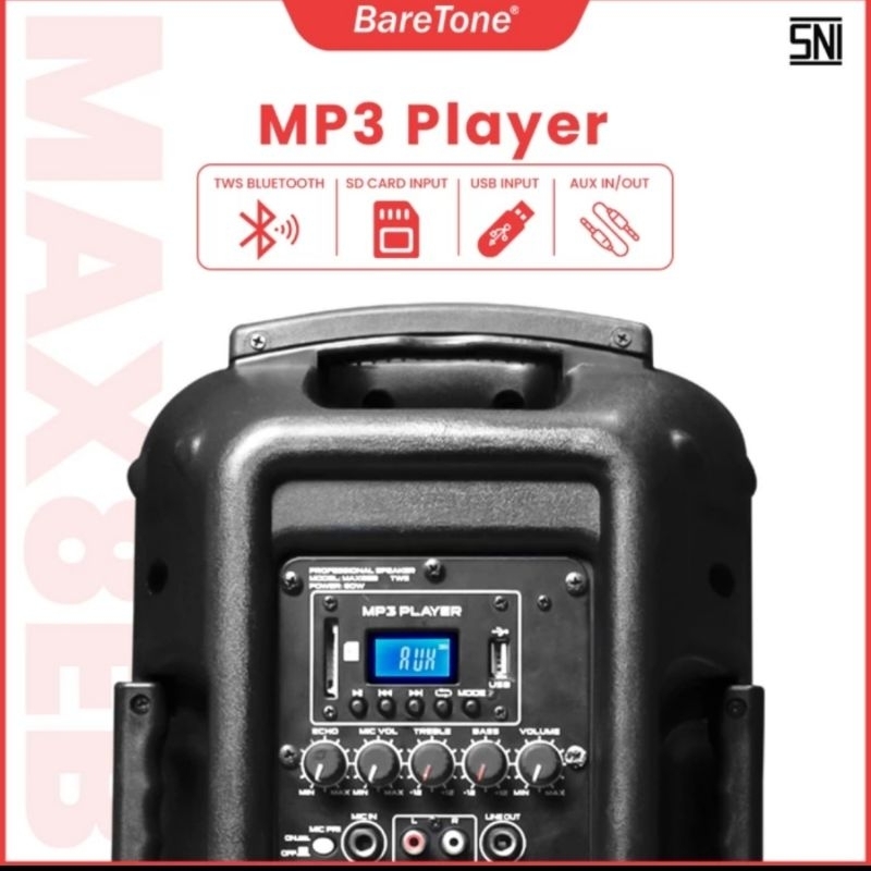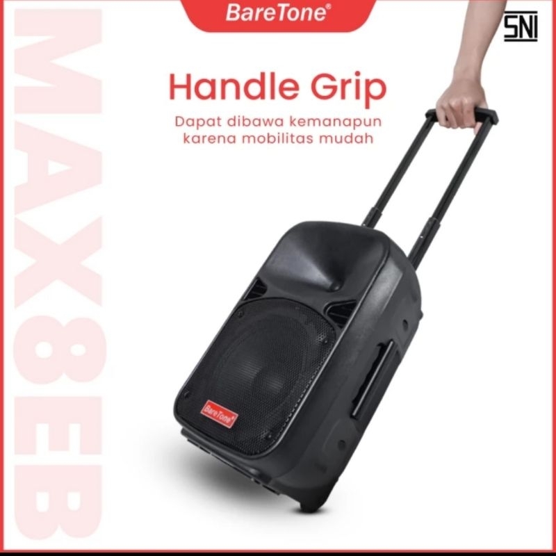 Speaker Portable Aktif BareTone 8 Inch Terbaik MAX08EB Bluetooth TWS [ 2 mic wireless ] Gratis Ongkir