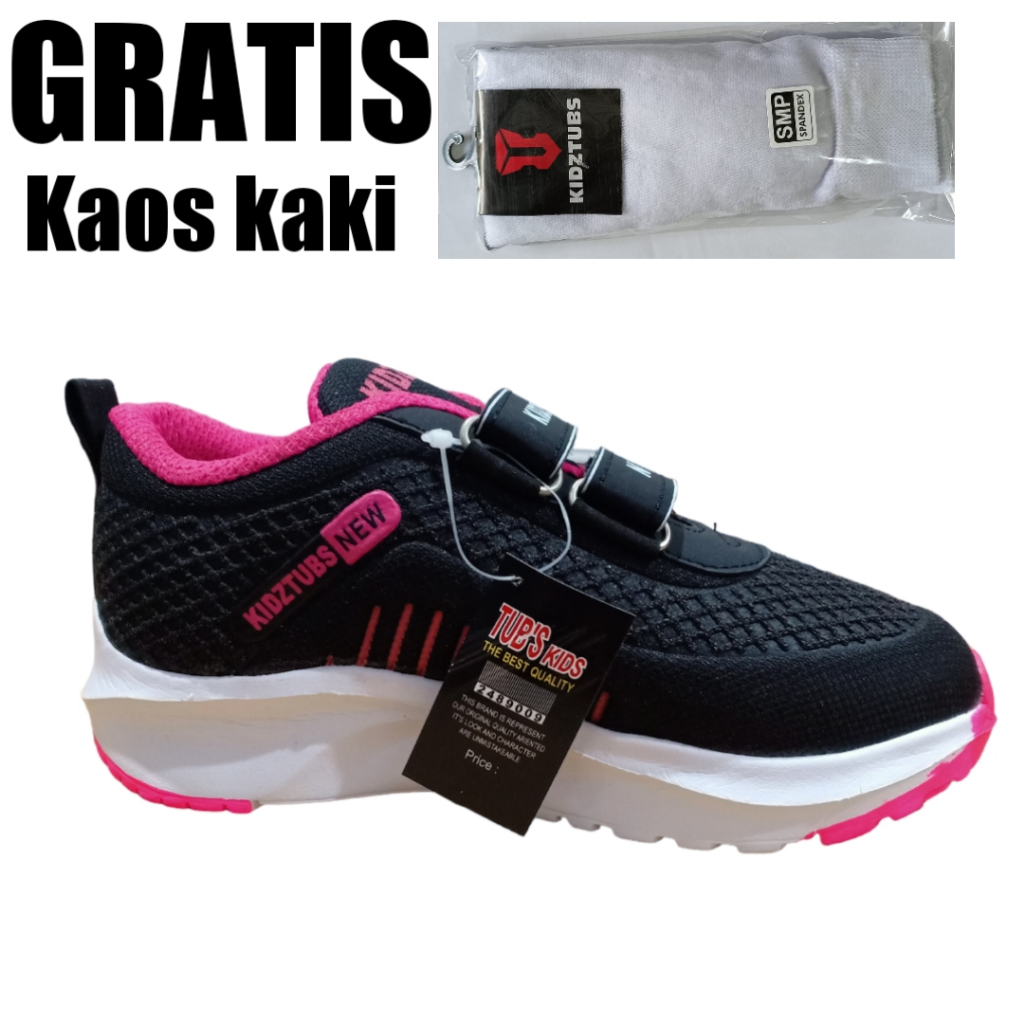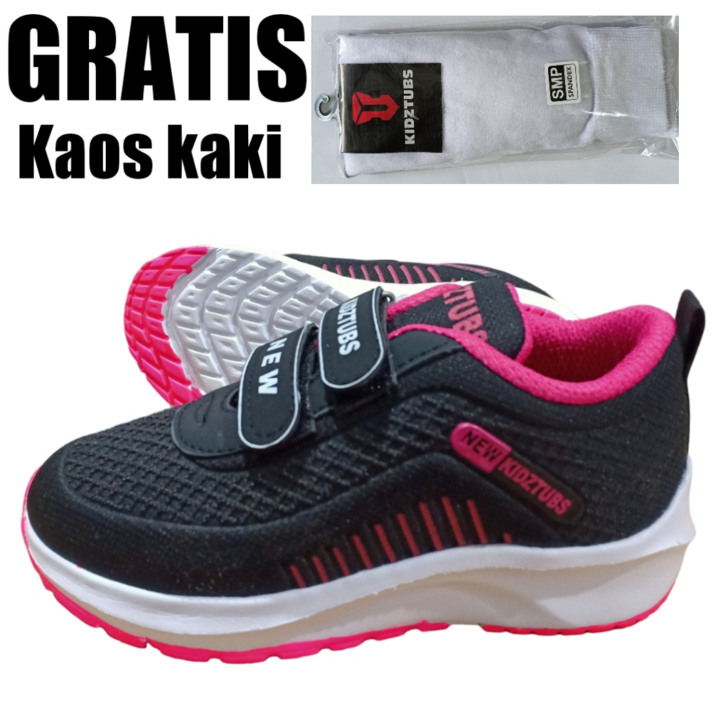 Sepatu Sekolah Anak Perempuan Warna Hitam Perekat Tali SD SMP SMP Umur 6-10 Tahun-KIDZTUBS203391823