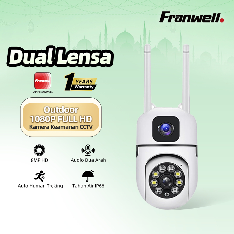 Fanwell V380 Pro Y33A CCTV Outdoor 8MP Dual Lens Kamera Wifi Anti Maling Tahan Air Pantau Lewat HP Night Vision