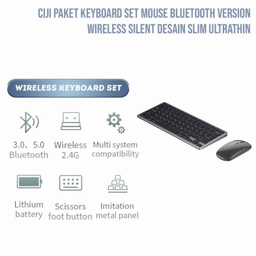 [Mall] CIJI SET KEYBOARD MOUSE WIRELESS+BLUETOOTH 3 DEVICE SLIM ULTRATHIN