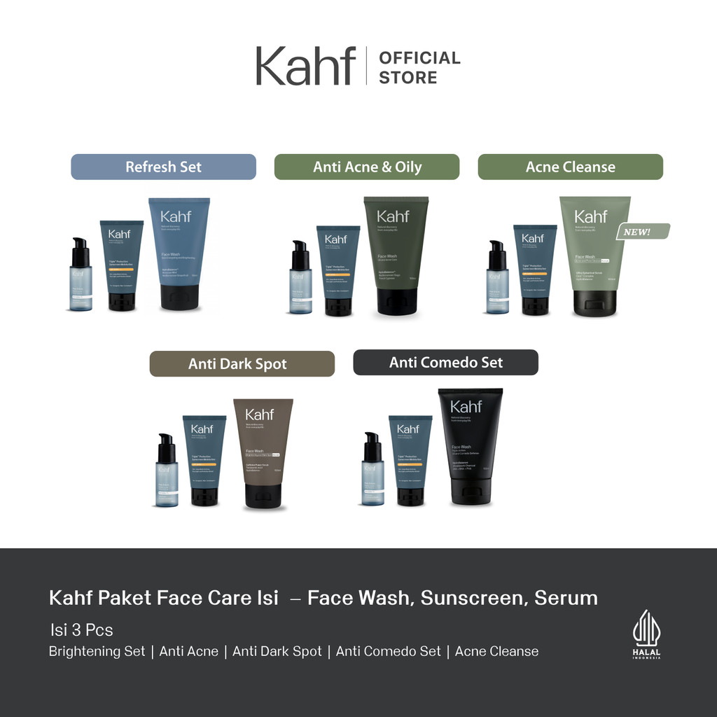 KAHF BUNDLE 3IN1 PAKET PERAWATAN WAJAH : WAJAH ANTI KETARIK, LEMBAB, & TERLINDUNGI SEHARIAN