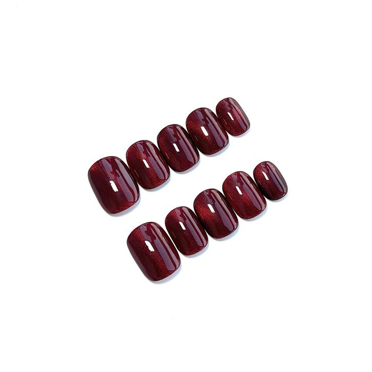 Fake nails premium buatan semi tangan kuku cat eye kuku palsu nail art + lem XS/S/M 10PCS/SET