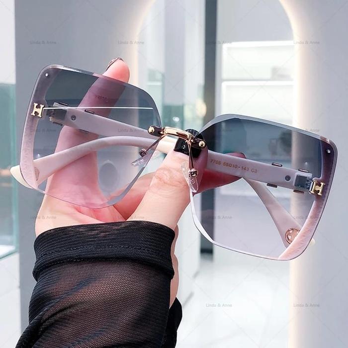 [Buy 1 Get 1] Kacamata Hitam Titanium Kotak H Wanita Sunglasses - Hitam Hitam