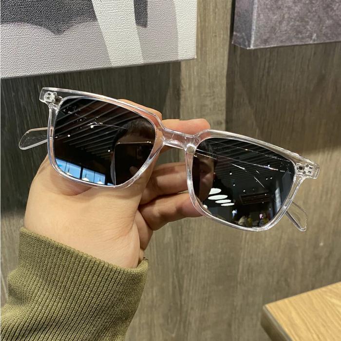 Kacamata Hitam UV400 Bentuk Persegi Panjang Gaya Retro Untuk Wanita/Pria - Hitam