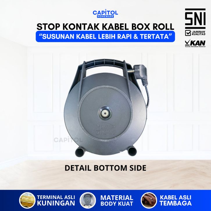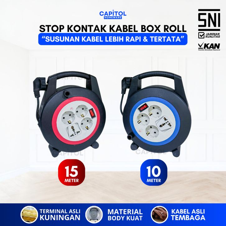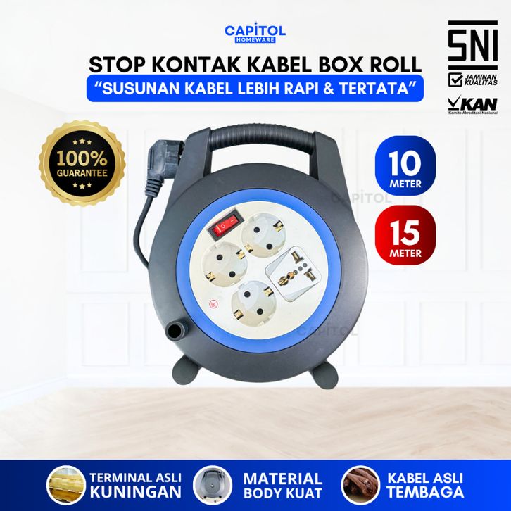NEW Capitol - Stop Kontak Kabel Box Roll + Switch 15/10 Meter 4 Lubang Terminal Asli Kuningan - Tembaga agebk
