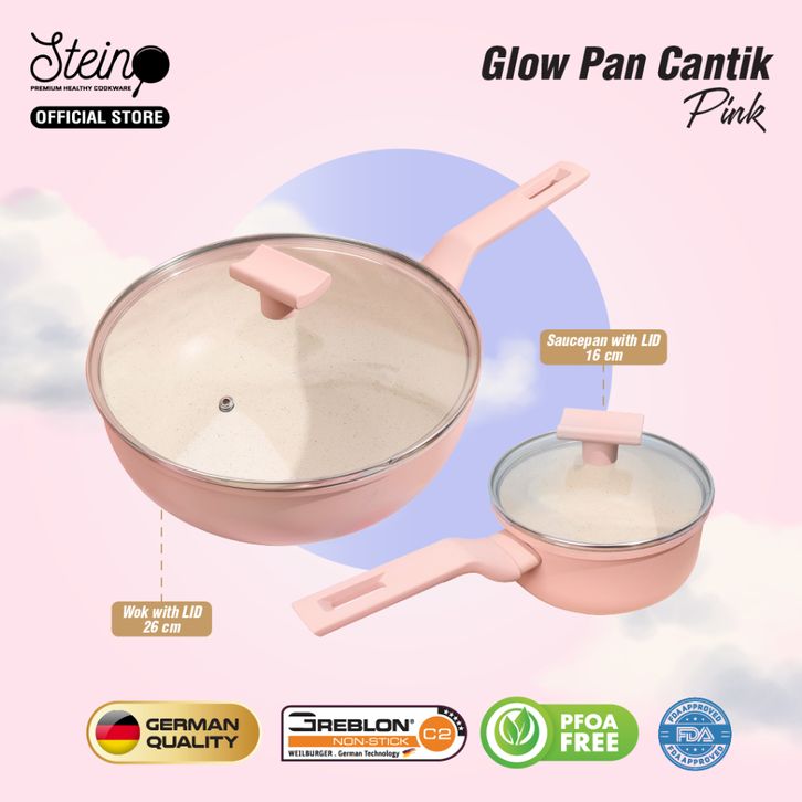 Panci Set Anti Lengket STEIN Paket Cantik Glowpan Panci German Quality Anti Lengket | Wok 26cm + Saucepan 16cm