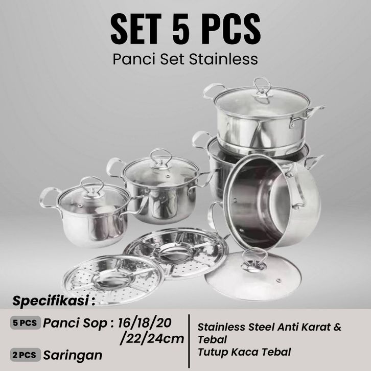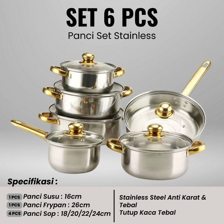 Panci Set Anti Lengket Nanjiren Set Masak Panci 6 Pcs Cookware Stainless Steel Anti Lengket Frypan Panci Wajan Premium