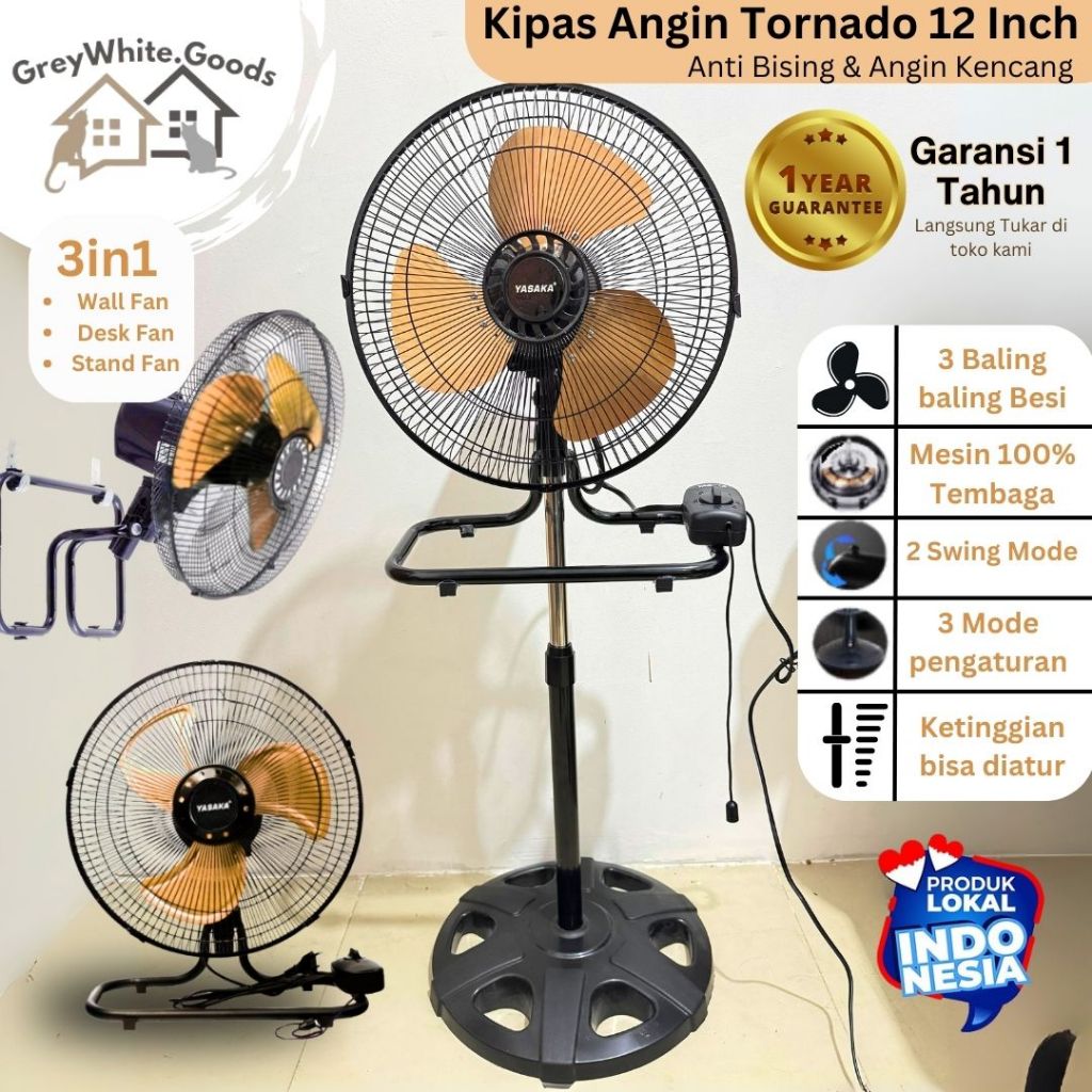Kipas Angin Besi Tornado Fan 12” 3in1 Wall Fan Hemat Daya Kencang