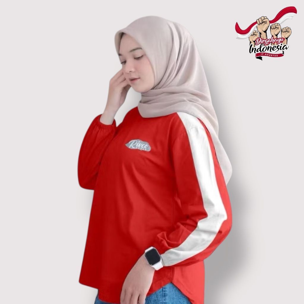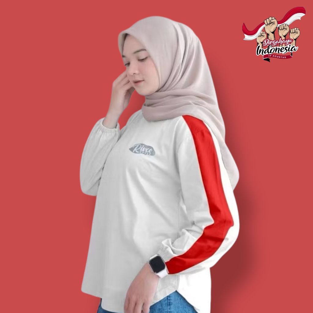 Kaos Merah Putih Spesial Kemerdekaan Atasan Jumbo Striped Wanita Terbaru Indonesia