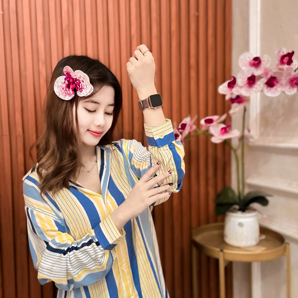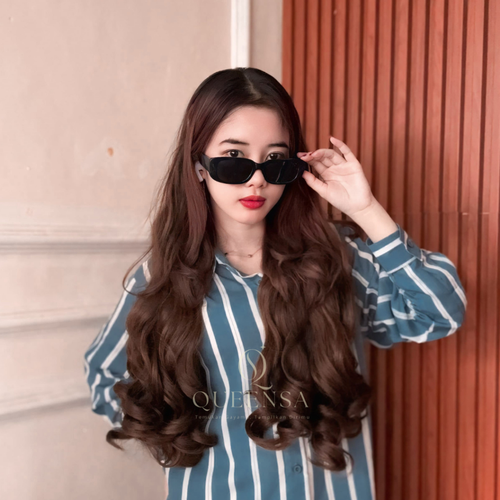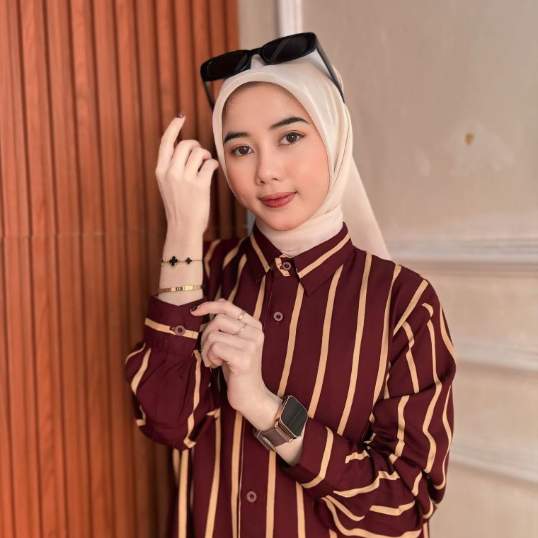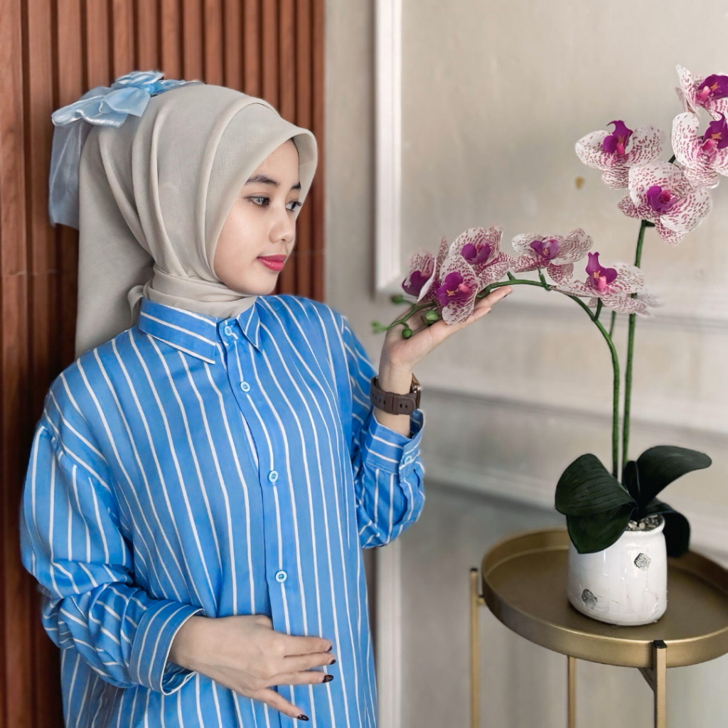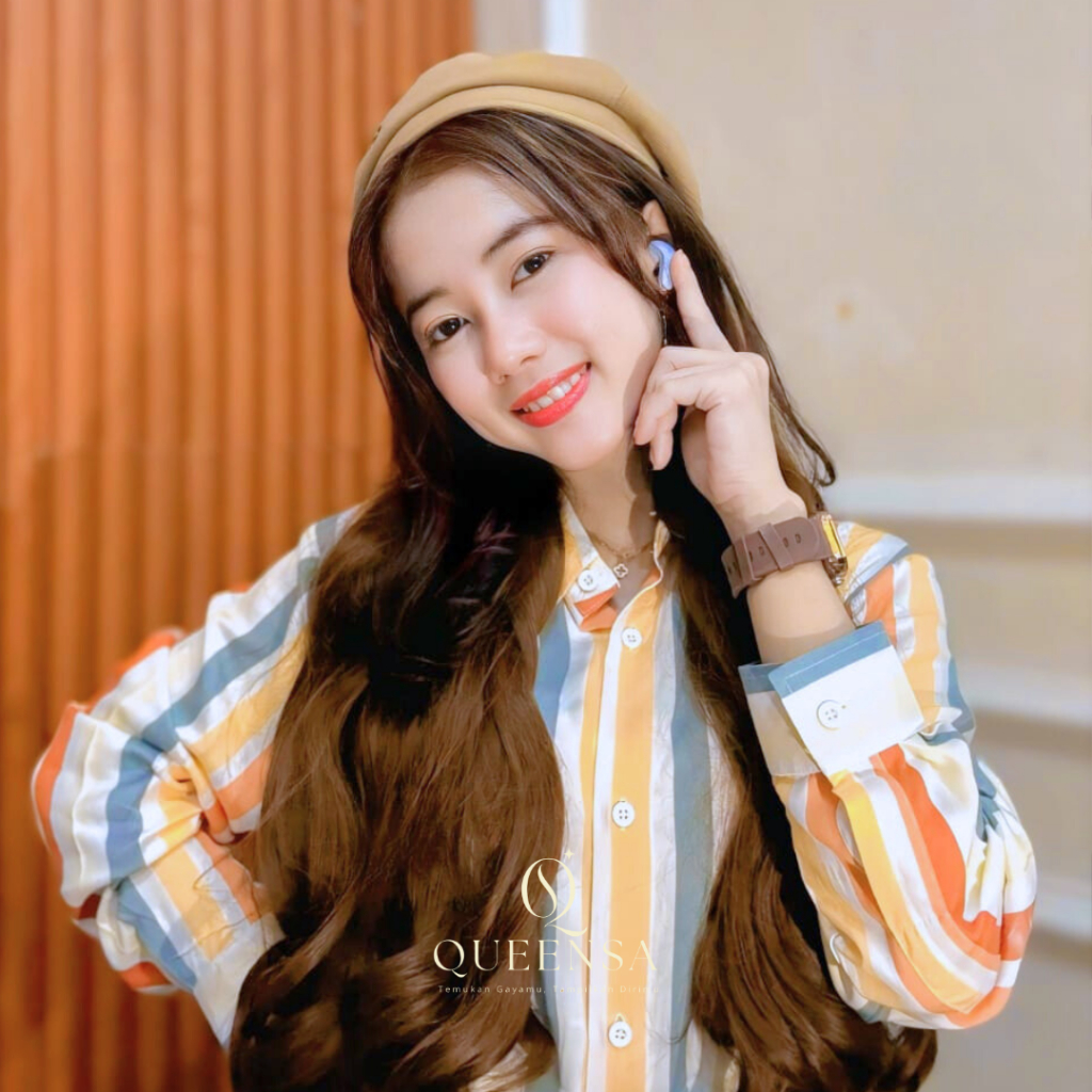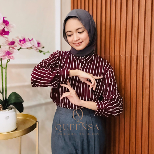 Queensa - Kemeja Salur Listra Katun Rayon Premium Hijab Wanita Lengan Panjang Stylish & Casual