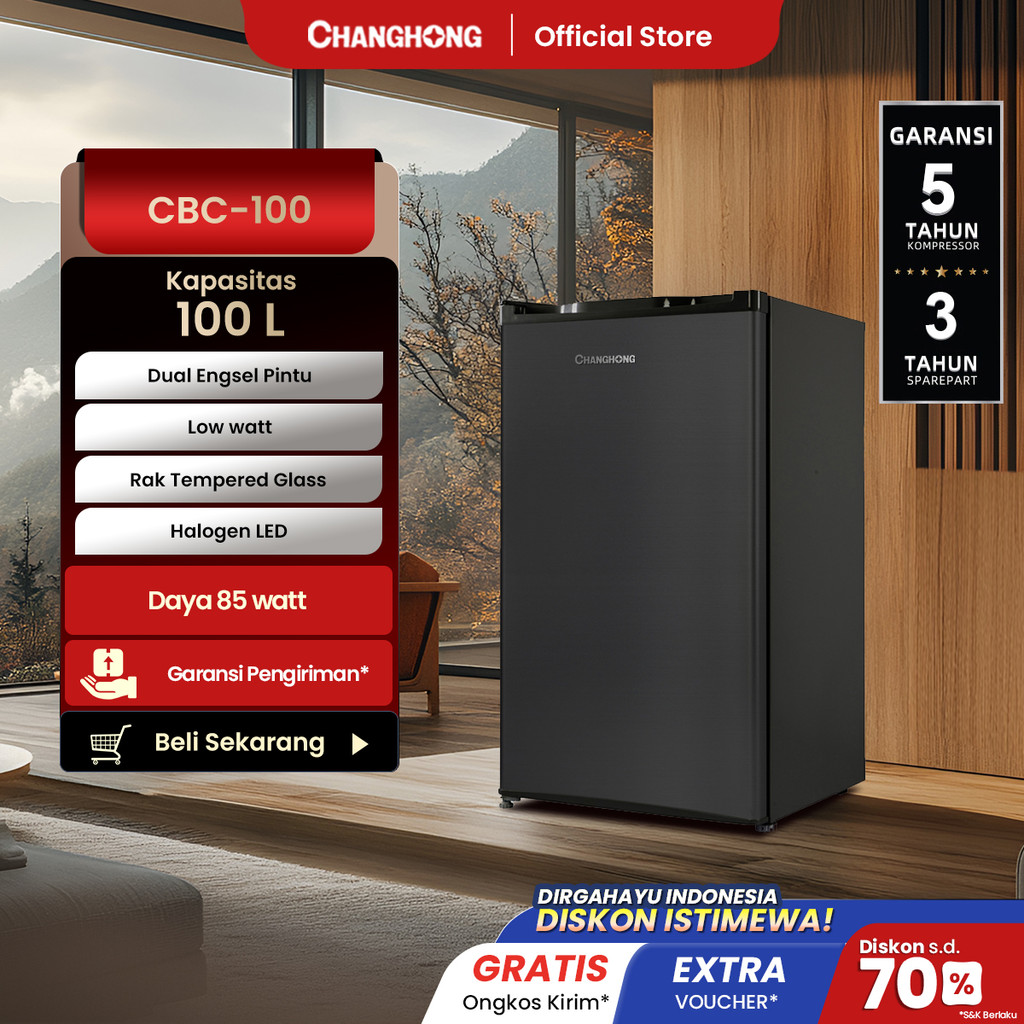Changhong Kulkas 1 pintu Refrigerator Kapasitas 100 Liter – CBC 100 Black