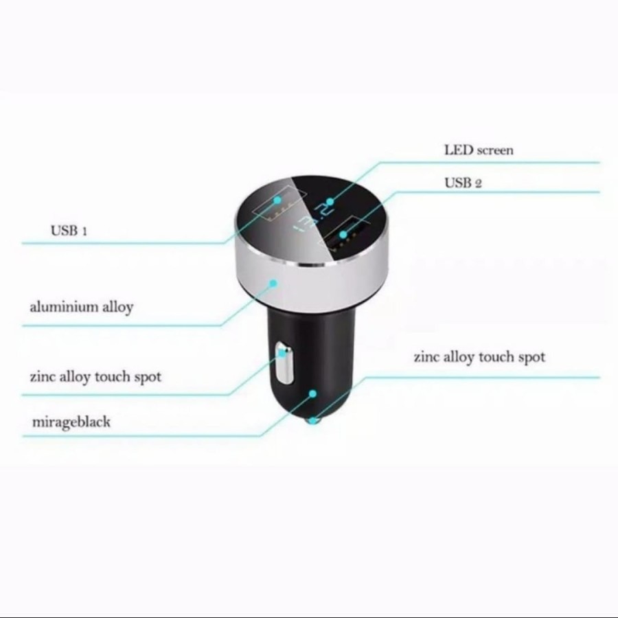 Car Charger Digital LED Colokan HP Mobil Display LED Dual USB