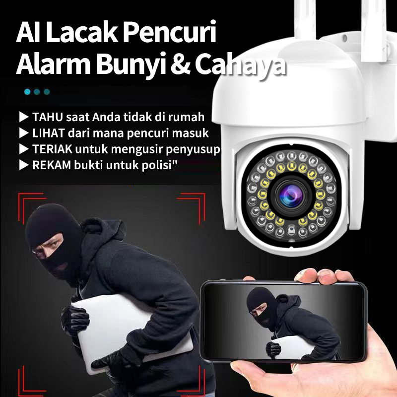 HNF CCTV Kamera Outdoor 8MP IP66 Tahan Air - WiFi Jarak Jauh via HP ,Night Vision , Deteksi Gerakan & Dua Arah Audio, PTZ 360° untuk Rumah/Toko (Kontrol HP, Micro SD Support)