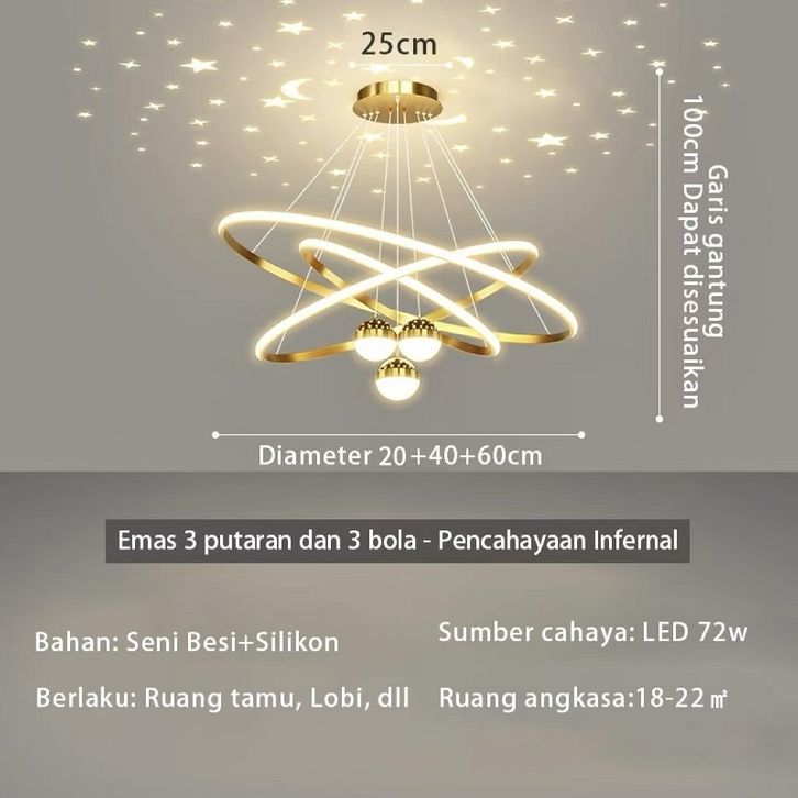 Lampu Hias Gantung Lampu Gantung Ruang Tamu Lampu Kamar Tidur LED Chandelier Lampu Gantung Langit Berbintang
