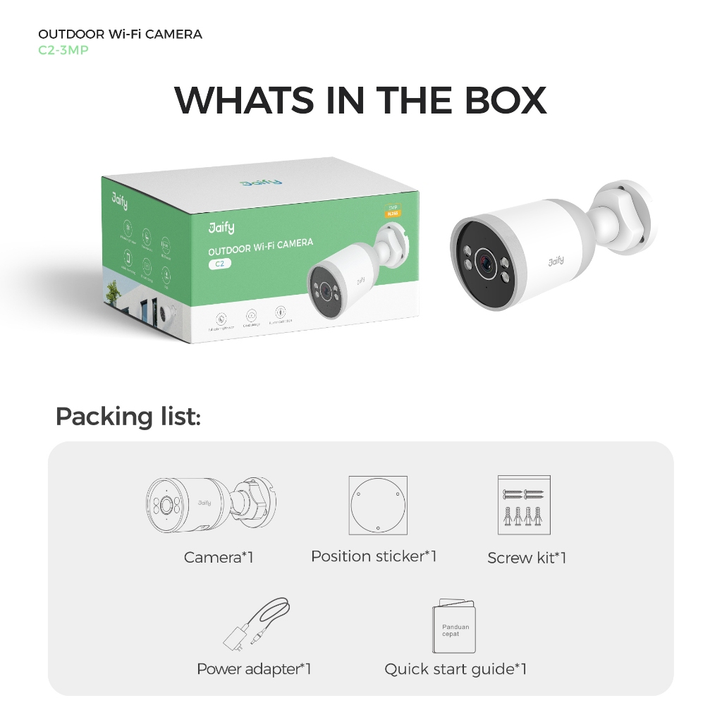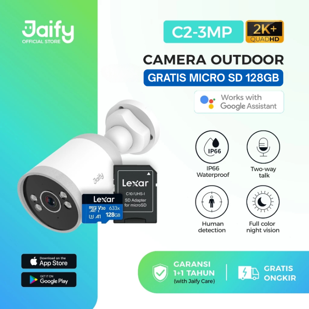 [GRATIS MICRO SD 128GB] JAIFY C2-3MP IP66 Smart Outdoor CCTV 2K+ Full color Night Vision / Kamera keamanan + Micro SD