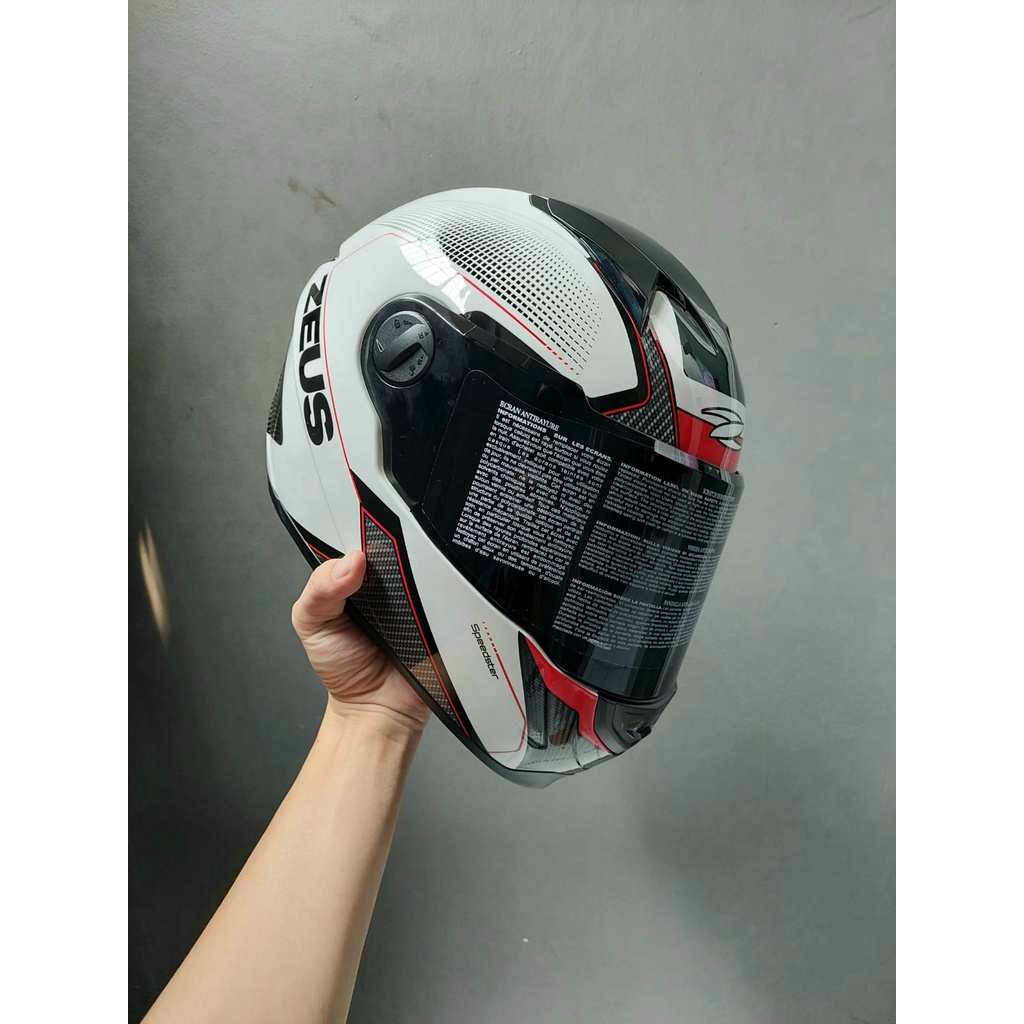 HELM MOTOR ZEUS ZS 811C WHI AL6 BLK RED GLOSSY FULL FACE SINGLE FLAT VISOR (FREE DARK SMOKE VISOR) ORIGINAL