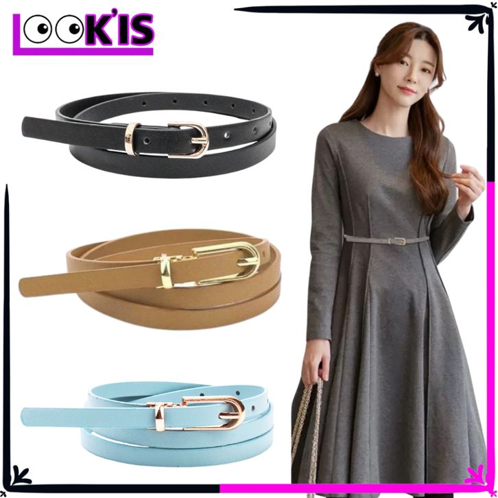 LOOK'IS - Ikat Pinggang Wanita Fashion Gesper Kecil Bahan Kulit PU Ring Belt Ikat Pinggang Gamis Wanita Gaya Casual