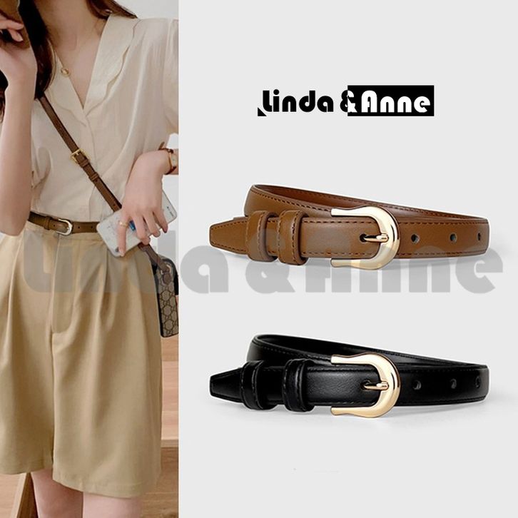 Sabuk Cewek Ikat Pinggang Wanita Bahan Kulit Sintesis Gaya Casual Retro Vintage Kekinian Belt Kecil Polos Untuk