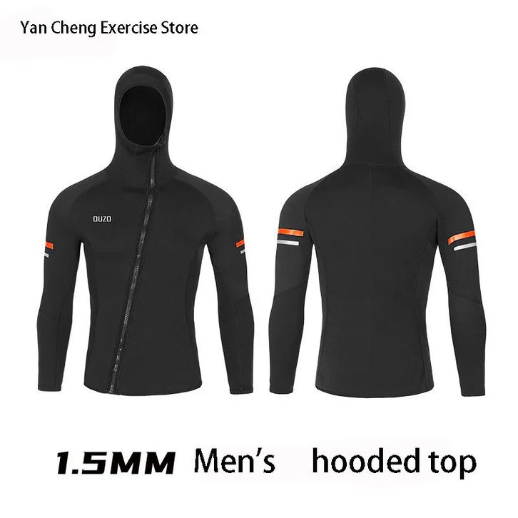 1.5mm Diving Jacket with Hood for Men Split Neoprene Wetsuit Long Sleeve Surfing Scuba Dive Top Swimsuit Free-dive Suit