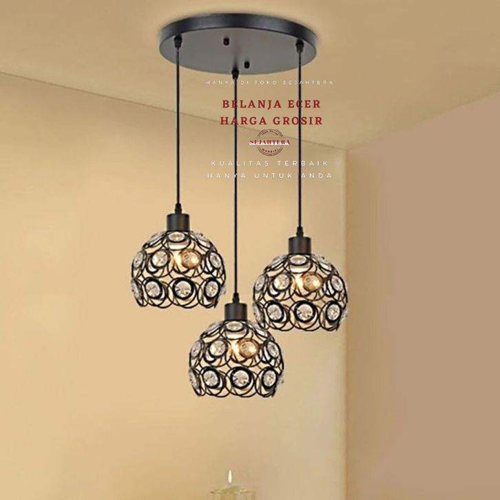 Lampu hias gantung tipe cabang 3 bulat pulset kabel-vitink-dudukan keflafon-bohlam