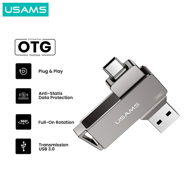 flashdisk otg lagu sandisk game USAMS Flashdisk OTG Dual Drive USB3.0 + Type C 16GB 32GB 64GB 128GB 256GB Rotatable Hig