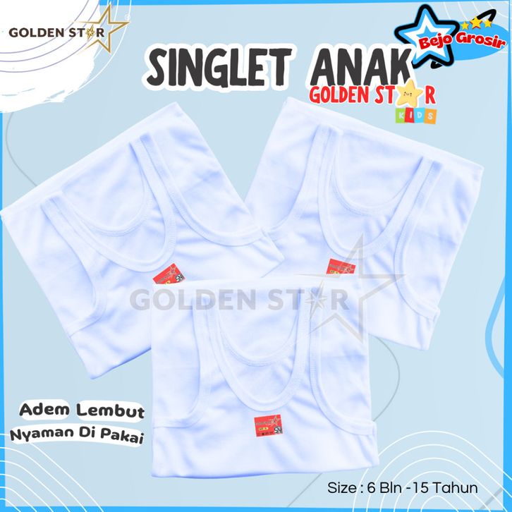 6 Pcs Kaos Dalam Anak SMP SMA Polos Putih Golden Star - kaos Dalam Anak SMP SMA baru lahir - Singlet Anak SMP SMA