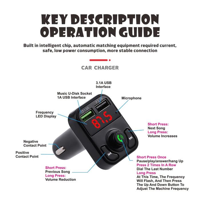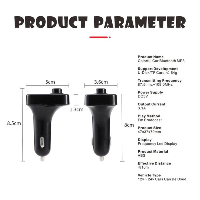 Car Bluetooth FM Transmitter Modulator MP3 Player 3.1A USB Charger Truk - Warna