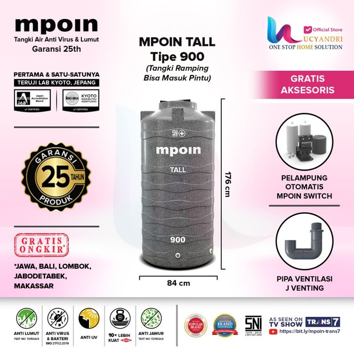 Tangki Air MPOIN PLUS 900 Tall Toren Tandon 900 Liter el Ramping