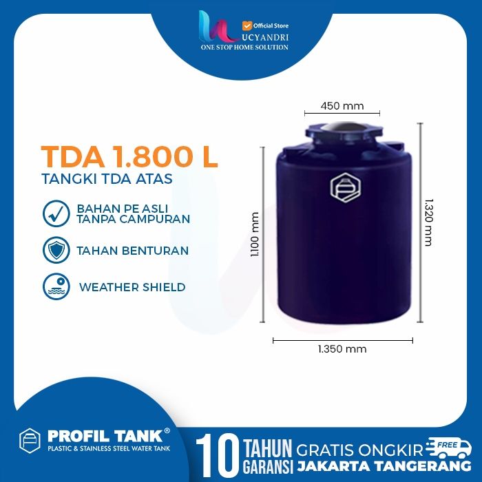 Tangki Air Plastik Profil Tank TDA 1800L Plastic HDPE, Tandon Air, Toren Air