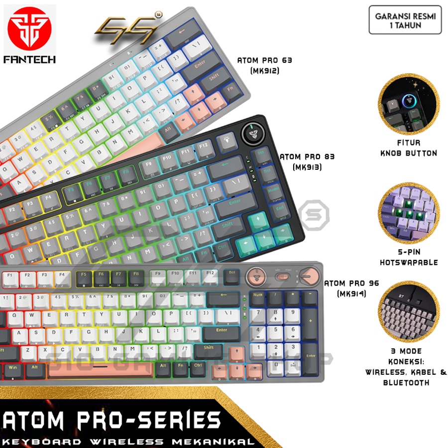 [Mall] FANTECH ATOM PRO SERIES MK912 MK913 MK914 KEYBOARD GAMING WIRELESS HOTSWAPABLE