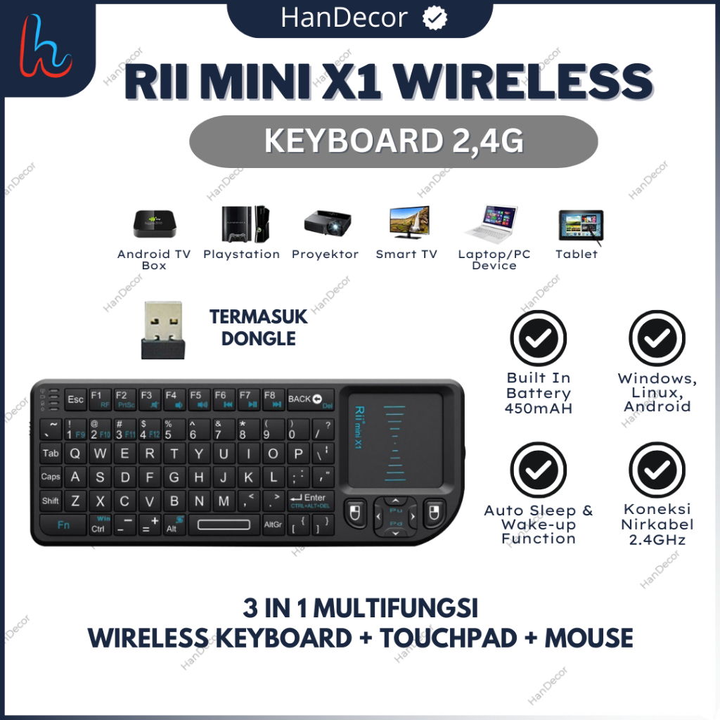 [Mall] RII MINI X1 KEYBOARD WIRELESS 2.4G AIR MOUSE KEYBOARD TOUCHPAD GAMING