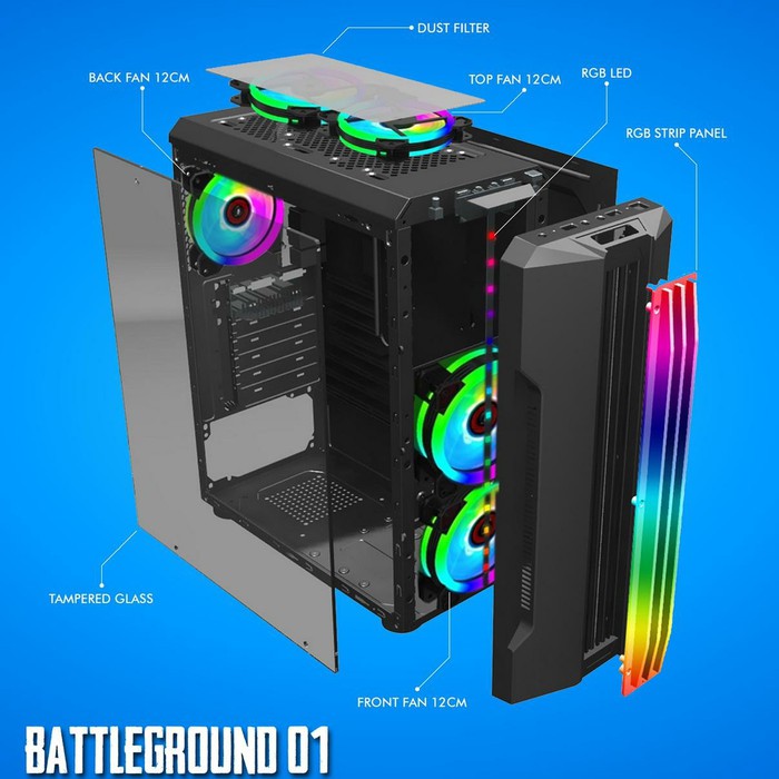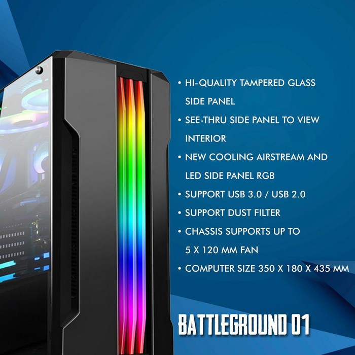 CASING GAMING CASE PC SIMBADDA BATTLEGROUND 01 RGB TEMPERED GLASS