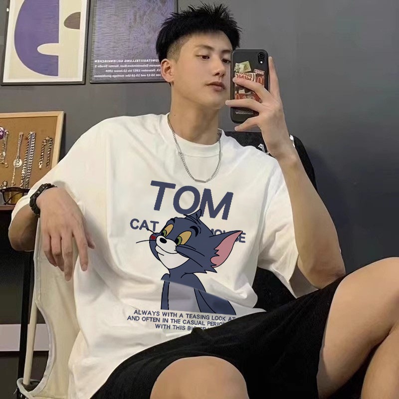 RENELLE Baju Kaos Pria Wanita Oversize Murah XXL | Kaos Anime Kaos Tom And Jerry | Baju Couple Pasangan Terbaru 2024 | B
