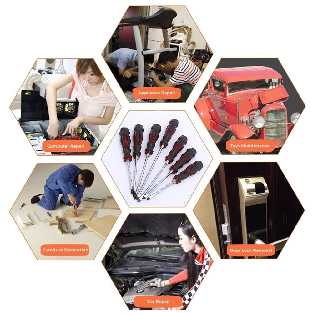 [] Set 7 Obeng Ketok Dengan Obeng Berbentuk Salib Hati Dengan Port Datar Bunga Plum Untuk Perbaikan Mobil Rumah Tangga M