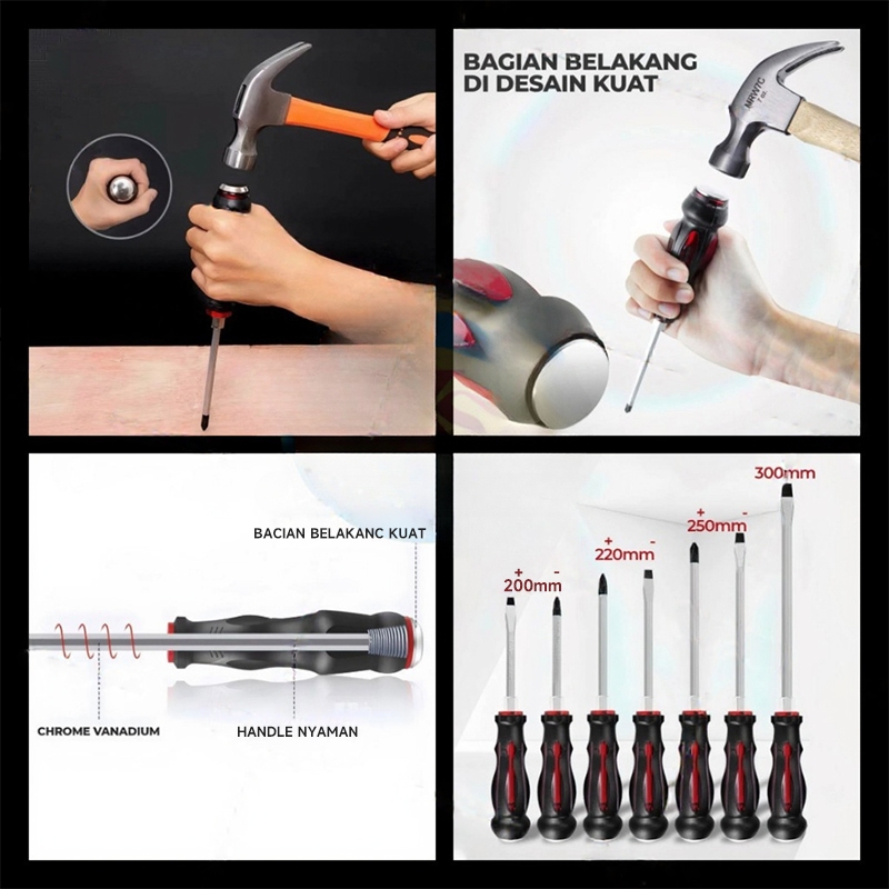 Coppexton Set 7 obeng ketok dengan obeng berbentuk salib hati dengan port datar bunga plum untuk perbaikan mobil rumah t