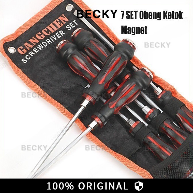BECKY Set 7 obeng ketok dengan obeng berbentuk salib hati dengan port datar bunga plum untuk perbaikan mobil rumah tangg