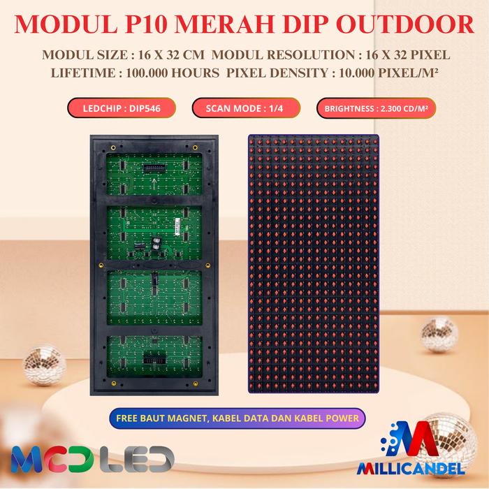 PANEL MODUL MODULE LED P10 RUNNING TEXT DIP MERAH OUTDOOR