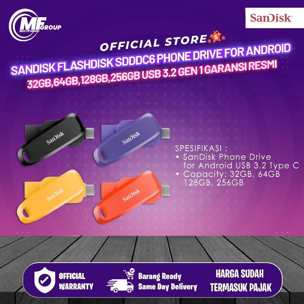 [Mall] SANDISK FLASHDISK SDDDC6 PHONE DRIVE FOR ANDROID 64GB USB 3.2 GEN 1 GARANSI RESMI